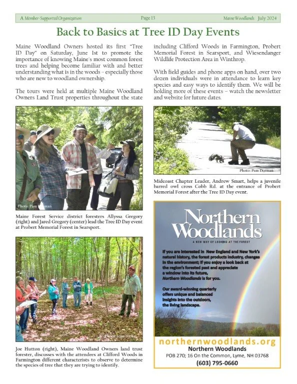 Maine Woodland Owners hosts Tree ID Day on the first Saturday of June at various locations throughout the state as an opportunity for woodland stewards and owners to learn Maine’s most common forest trees.